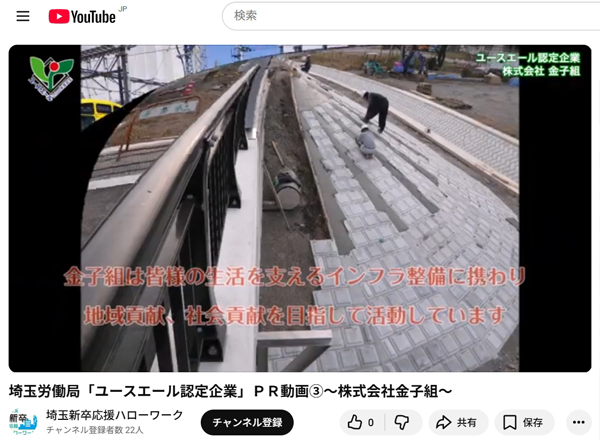 埼玉労働局「ユースエール認定企業」PR動画③~株式会社金子組~