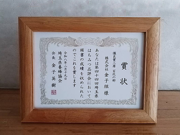 はちみつ表彰されました この度、金子組で生産している吾野産はちみつが 埼玉県養蜂協会より表彰されました! 巣箱設置個所の周辺に注意看板も付け終わり ゴールデンウイーク明けから採蜜がはじまります 今年度生産のはちみつも、ほぼ完売 ぜひ春以降をお楽しみに! ◀前の記事へ 次の記事へ▶
